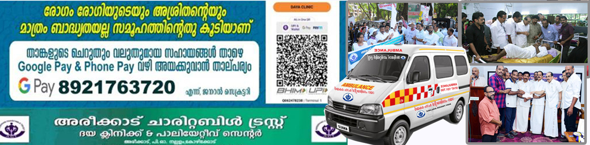 ദയ പാലിയേറ്റീവ് കെയർ സെൻ്റർ അരീക്കാട് ചാരിറ്റബിള് ട്രസ്റ്റിൻ്റെ സംയുക്ത പദ്ധതിയാണ് രോഗികൾക്ക് സൗജന്യ പാലിയേറ്റീവ് കെയർ നൽകുന്നത്.